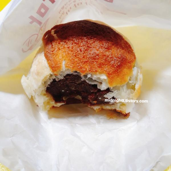 겉 부분이 페스츄리 같더라고요. 굉장히 얇고 부드러웠습니다. 속은 직접 끓인 국산 팥에 호두와 밤으로 구성돼 있다고 하는데 밤보다 호두 맛이 많이 느껴졌습니다. 알갱이가 생각보다 많이 들어있어서 씹을 때마다 고소했고 전체적으로 담백하니 좋았습니다.
