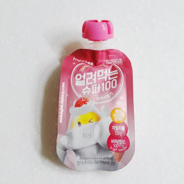 프로바이오틱스 2종이 100만 함유돼있고 자일리톨이 0.6g, 비타민c가 100mg 들어있다고 합니다. 냉장제품인데 냉동실에 넣고 얼려서 녹여먹었습니다. 시원하고 셔벗 같아서 좋았습니다.
