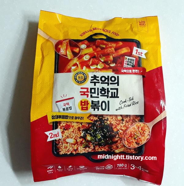 용량은 780g이고 냉동식품입니다. 떡볶이를 먹고 남은 국물에 밥을 볶아 먹을 수 있도록 냉동 잡채 볶음밥이 들어있습니다.