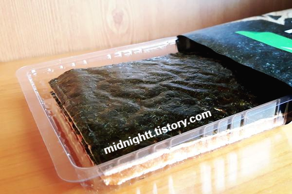 긴 투명 플라스틱에 블랙김 어포가 통째로 들어있습니다. 김은 달짝지근하고 어포는 살짝 짭조름하더라고요. 손으로 먹을 만큼 끊으면 잘 부서지긴 하는데 가끔 어포는 부서졌는데 김은 그대로였던 경우도 있었습니다. 맥주 안주로 먹는 걸 추천하는 것 같던데 그냥 간식으로 먹어도 괜찮았습니다. 손에도 기름이 심하게 묻지 않아서 깔끔하게 먹을 수 있었습니다.